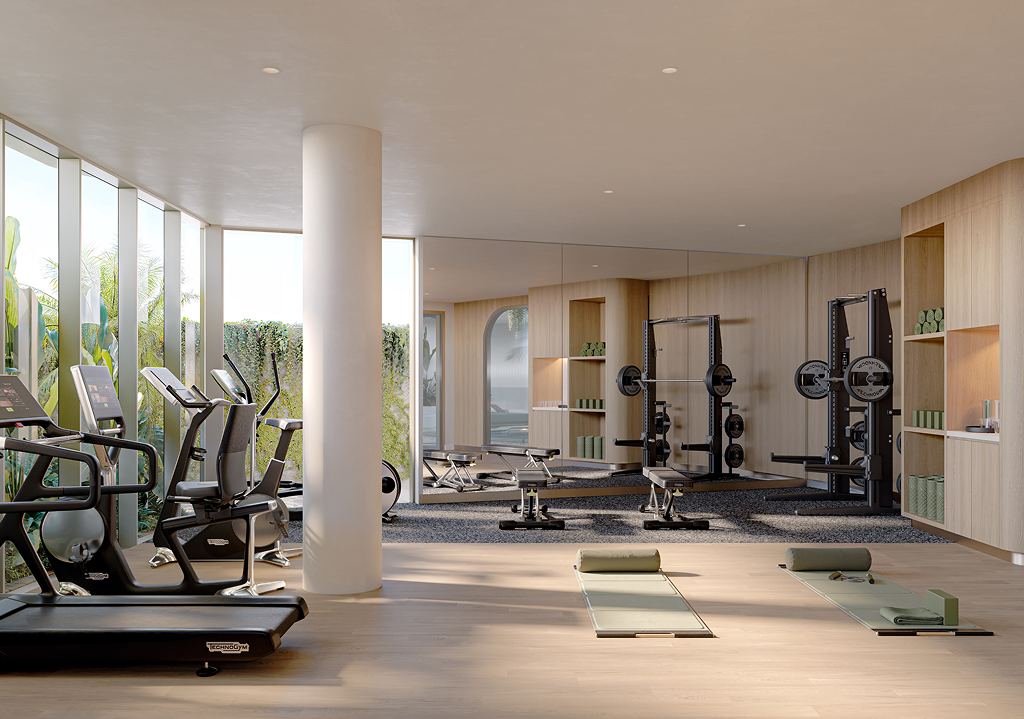 Whether it's strength, stillness or simple movement, Elle's gym is designed to support your pace. With space for cardio, weights, yoga and pilates, this is wellness made part of everyday life—private, considered and always within reach.